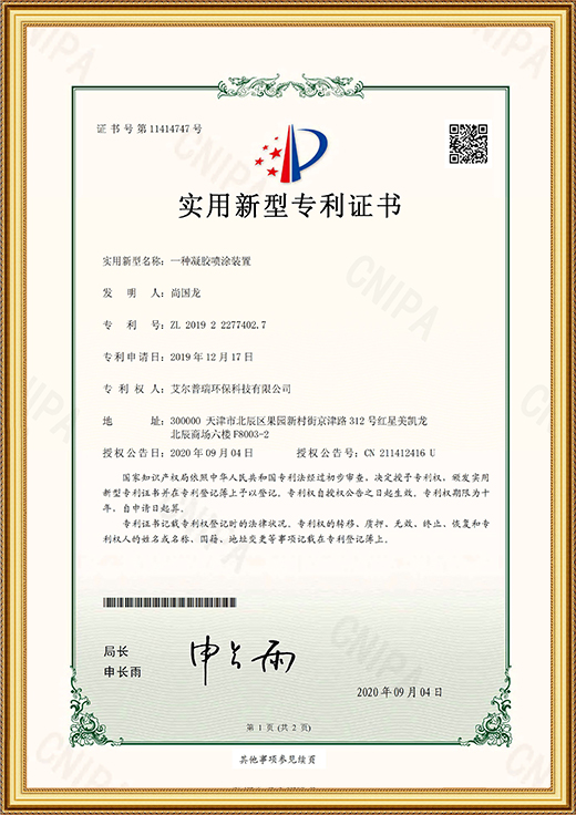 實(shí)用新型專利證書(shū)(一種凝膠噴涂裝置)